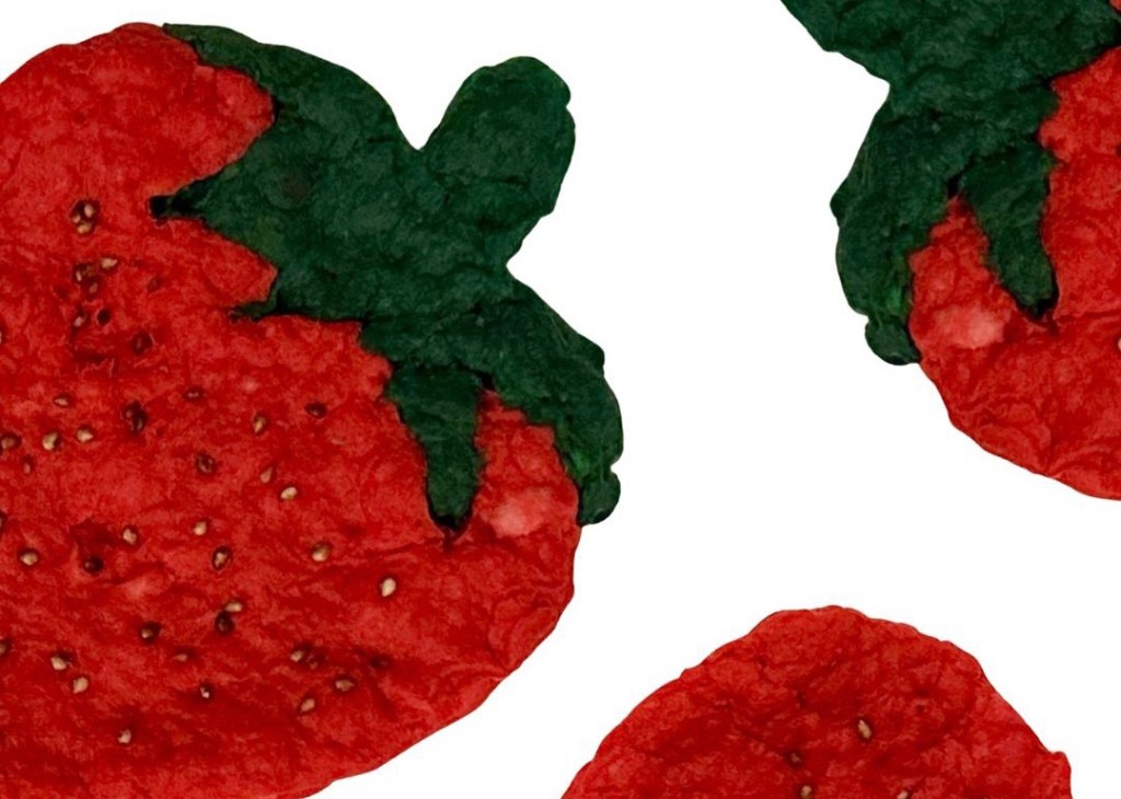 - Place your newly formed strawberry paper between a few paper towels and gently press out excess water